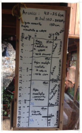 Eoarcaica, amarillo claro: líquenes macerados (Pseudocyphellaria aureata)