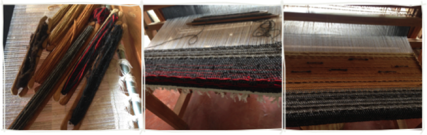 rojo: única lana del tapiz con teñido comercial, para representar el evento único de la formación de la Luna